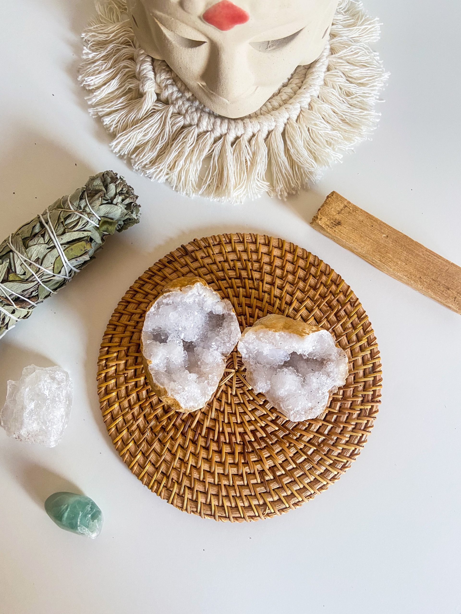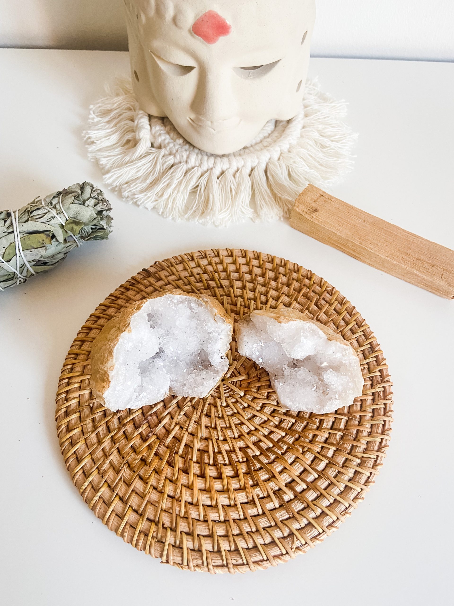 Geoda completa. Las mitades encajan a la perfección. Regala a tu ser querido una de las mitades como símbolo de unión eterno. El Feng Shui relaciona los elementos pares como favorables en una relación, puedes inspirarte para ello colocando cada una de las mitades en cada mesilla del dormitorio.